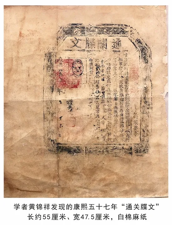小彩蛋来了:2023年,著名学者黄锦祥发现了一件康熙五十七年(1718年)的“通关牒文”,距今已有300多年历史。这件罕见的“中国古代护照”上,竟然还有一个手绘的男性半身画像,相当于当时的“手工版证件照”!