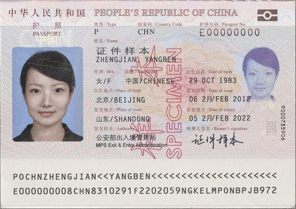 个人信息包括姓名、性别、国籍、出生日期、出生地点、持证人签名等。最显眼的是你的姓名,中文在上,拼音在下,值得一提的是护照上的姓名拼音遵循的是中国人的姓名顺序,姓在前名在后,比如“张三”,在护照上就是“ZHANG SAN”,而不是英语惯常的规则“SAN ZHANG”。性别的英文标识为M或者F,M代表男性(Male),F代表女性(Female)。出生日期格式是日日月月年年(DDMMYY格式),比如1990年1月15日出生,就写成15 1月/JAN 1990,这里用的是英文月份的缩写,JAN是一月,FEB是二月,以此类推。出生地点一般是省份,没啥好说的。